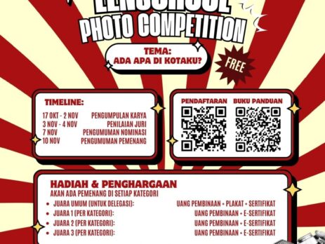 Lenschool 2025 akan berlangsung mulai 17 Oktober hingga 2 November 2025, dengan total hadiah sebesar Rp2.000.000 serta e-sertifikat bagi pemenang lomba. Kegiatan ini mendapat dukungan penuh dari Program Studi Fotografi ISI Yogyakarta dan Fakultas Seni Media Rekam.