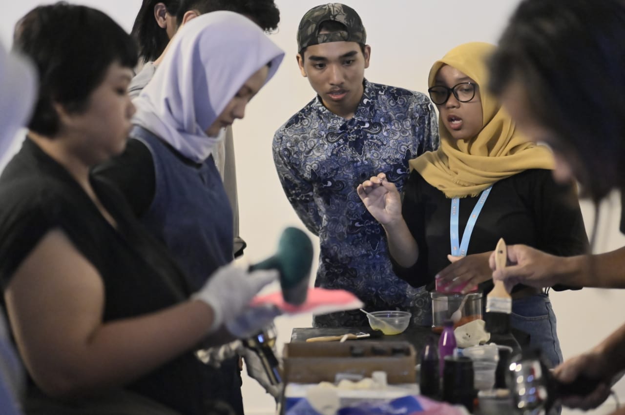 The title "APHIC WEEK" used in this exhibition is a representation of the learning process about old printing techniques, which were invented in the 19th and 20th centuries. In this course, students are invited to learn various printing techniques using various tools and chemicals. Dr. Irwandi, M.Sn., emphasized that in order to present this exhibition, the students had to learn old printing techniques such as cyanotypes, vandyke brown print (VDB), gum bichromate, and even the latest carbon transfer print, dryplate, and gumoilThis is a course that requires special understanding and attention. The lecture process is dynamic, challenging students to always actively explore new possibilities that can be realized through the creation of works using old printing techniques.