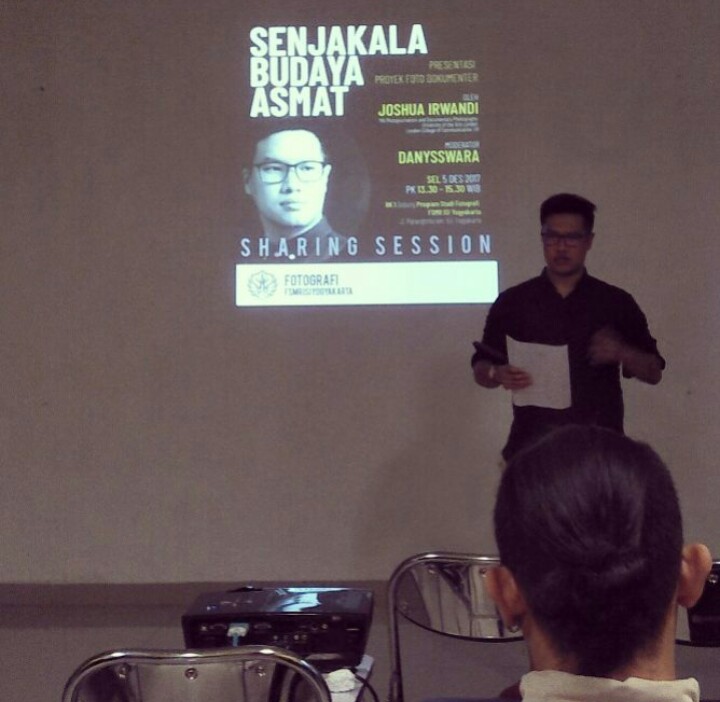 Joshua Irwandi, a talented young photographer and MA winner from Photojournalism and Documentary Photography, University of the Arts London, London College of Communication, UK, had the opportunity to attend the Photography Study Program FSMR ISI Yogyakarta on Tuesday, December 5, 2017. Joshua Irwandi made a presentation about his documentary photo project in Asmat, Papua. This documentary project tells how photography media is used to discuss the various value shifts that occur in Asmat society. A similar presentation was done at Objectifs Center for Photography and Film, Singapore, with the title Not A Blank Canvas. Joshua Irwandi also shared his experiences while studying photography in the UK and participating in various photography events abroad. The event, which was open to the public, was attended by around 40 people.