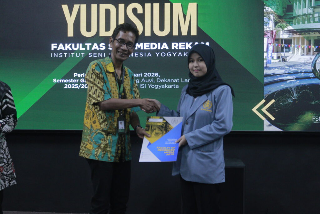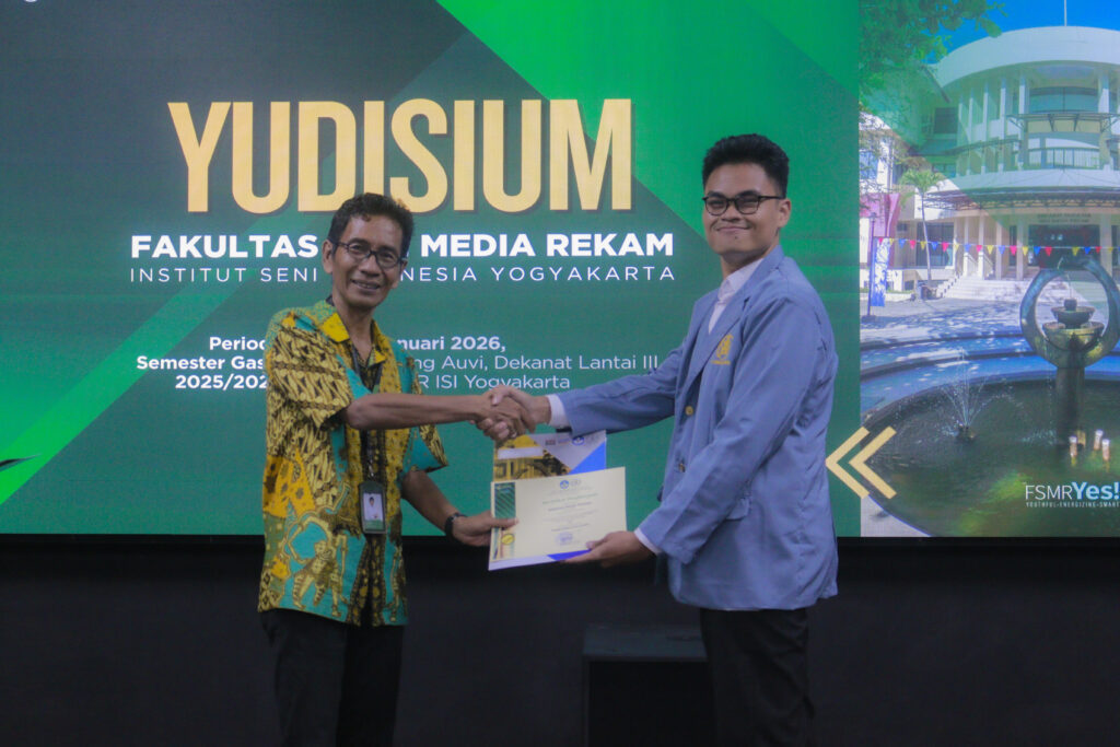 ISI Yogyakarta, 19 Januari 2026 – Institut Seni Indonesia Yogyakarta menyelenggarakan Yudisium Fakultas Seni Media Rekam periode  gasal 2025/2026 di ruang Auvi (Dekanat Lantai III FSMR ISI Yogyakarta), Senin (19/1). Sejumlah 99 mahasiswa telah menyelesaikan program studinya dengan baik, bahkan sebanyak 38 mahasiswa lulus dengan pujian (cumlaude).