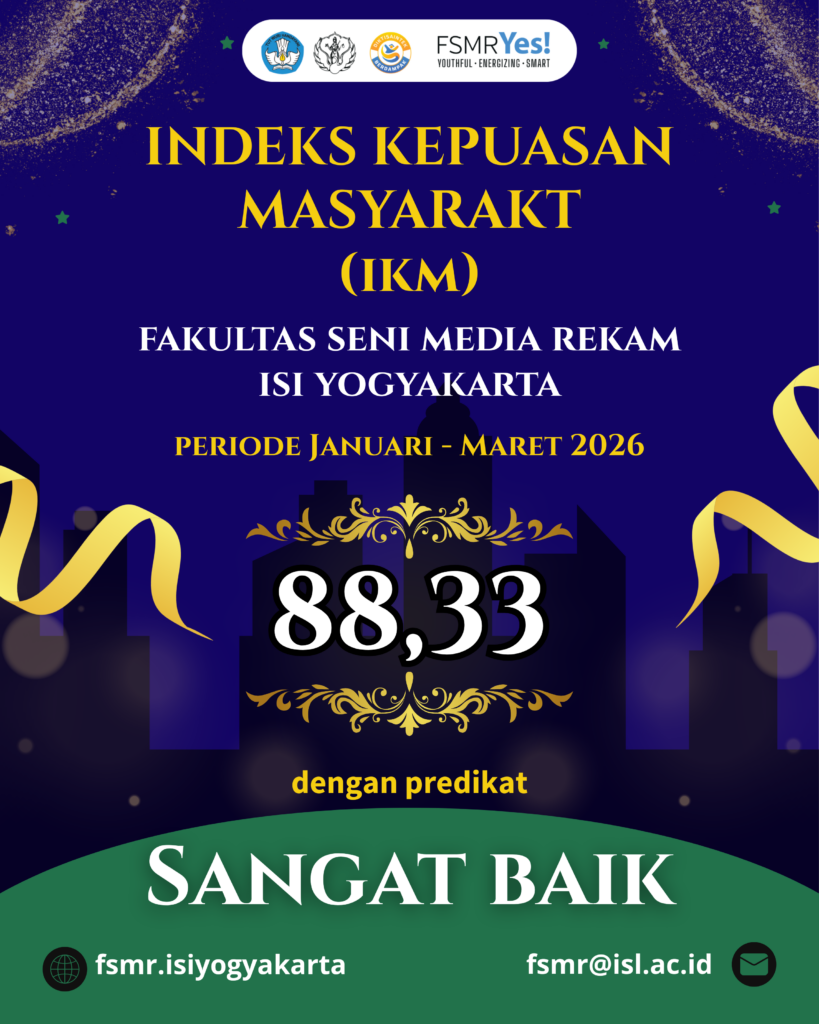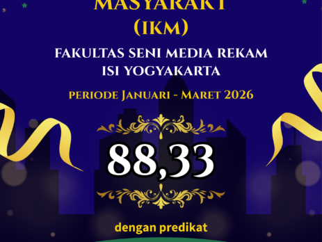 Indeks Kepuasan Masyarakat (IKM) Fakultas Seni Media Rekam ISI Yogyakarta periode Januari–Maret 2026 meraih nilai 88,33 dengan predikat SANGAT BAIK.