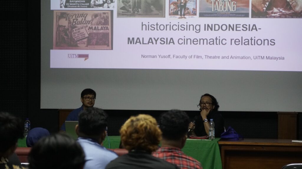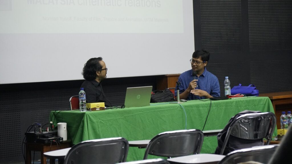 Dalam pemaparannya, Dr. Norman Yusoff mengkaji dinamika hubungan sinematik Indonesia–Malaysia yang terbentuk melalui pertukaran kreatif, pengaruh politik, perubahan industri film, serta representasi identitas budaya di layar lebar. Ia menegaskan bahwa sinema tidak dapat dipandang semata-mata sebagai hiburan, melainkan sebagai ruang perjumpaan sejarah, ideologi, dan kebudayaan dua negara serumpun.