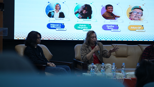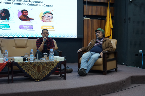 Di dalam sesi diskusi yang dipandu Arturo GP, Sastha Sunu menceritakan pengalamannya dalam mengelola jukstaposisi satu scene penting di film “5 cm” ketika ia memutuskan hanya menunjukkan satu shot dialog panjang karakter Genta tanpa disisipin satu reverse-shot karakter Riani agar penonton berempati atas penantian panjangnya mengungkapkan perasaan cinta kepada Riani sehingga tak perlu adanya interupsi dalam bentuk shot lain. Selain itu Sastha juga menyatakan bahwa perubahan urutan shot di dalam editing bisa saja mengubah semua informasi, namun jangan sampai mengubah karakter. Semantara itu Wawan I. Wibowo juga memaparkan peran penting jukstaposisi pada kasus film “Ipar adalah Maut” untuk memberikan tekanan dramatik kepada penonton. Ia menunjukkan contoh kasus scene ketika karakter Aris sedang berselingkuh dengan Rani di kamar Nisa dan saat itu Nisa sedang memasuki rumah. Melalui susunan shot yang dibangun, penonton harap-harap cemas mengira bahwa Nisa akan memergoki mereka. Namun hal itu tidak terjadi karena Aris sudah nampak tidur seorang diri saat Nisa memasuki kamar dengan tidak menampilkan shot Rani yang menyelinap bersembunyi pada struktur cutting-nya. Lebih jauh Wawan juga menambahkan bahwa tugas seorang editor adalah mengalir skenario, namun jika di meja editing skenarionya berubah maka wajib menuliskan kembali berdasarkan shot yang dibuat sutradara. Kelvin Nugroho juga menceritakan berbagai tantangan dalam proses editing film “Marlina, Si Pembunuh Dalam Empat Babak” terutama scene para perampok yang mati diracun yang merupakan scene long–take dengan static–shot sehingga ia bersama sutradara sampai harus berkali-kali melakukan eksperimen sampai diperoleh hasil final berupa jump–cut. Ia juga tidak hanya melihat motif penyambungan melalui adegan namun pada bagian-bagian lainnya menggunakan komposisi shot, mengaitkan aspek grafis di dalam bidang frame.